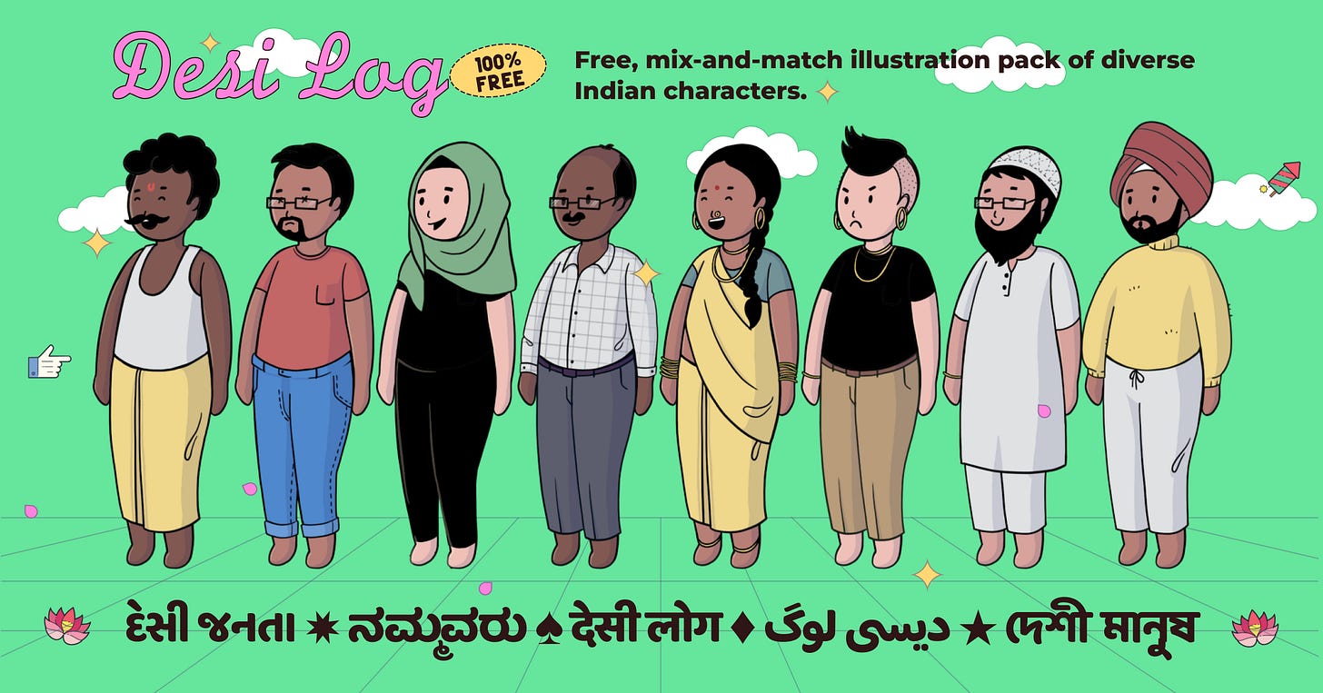 Came across a brilliant gig on Twitter by Juhi Chitra called Desi Log. Socho kya ho sakta hai? Well, it is a free, mix-and-match illustration pack of diverse Indian characters. I AM A FAN!